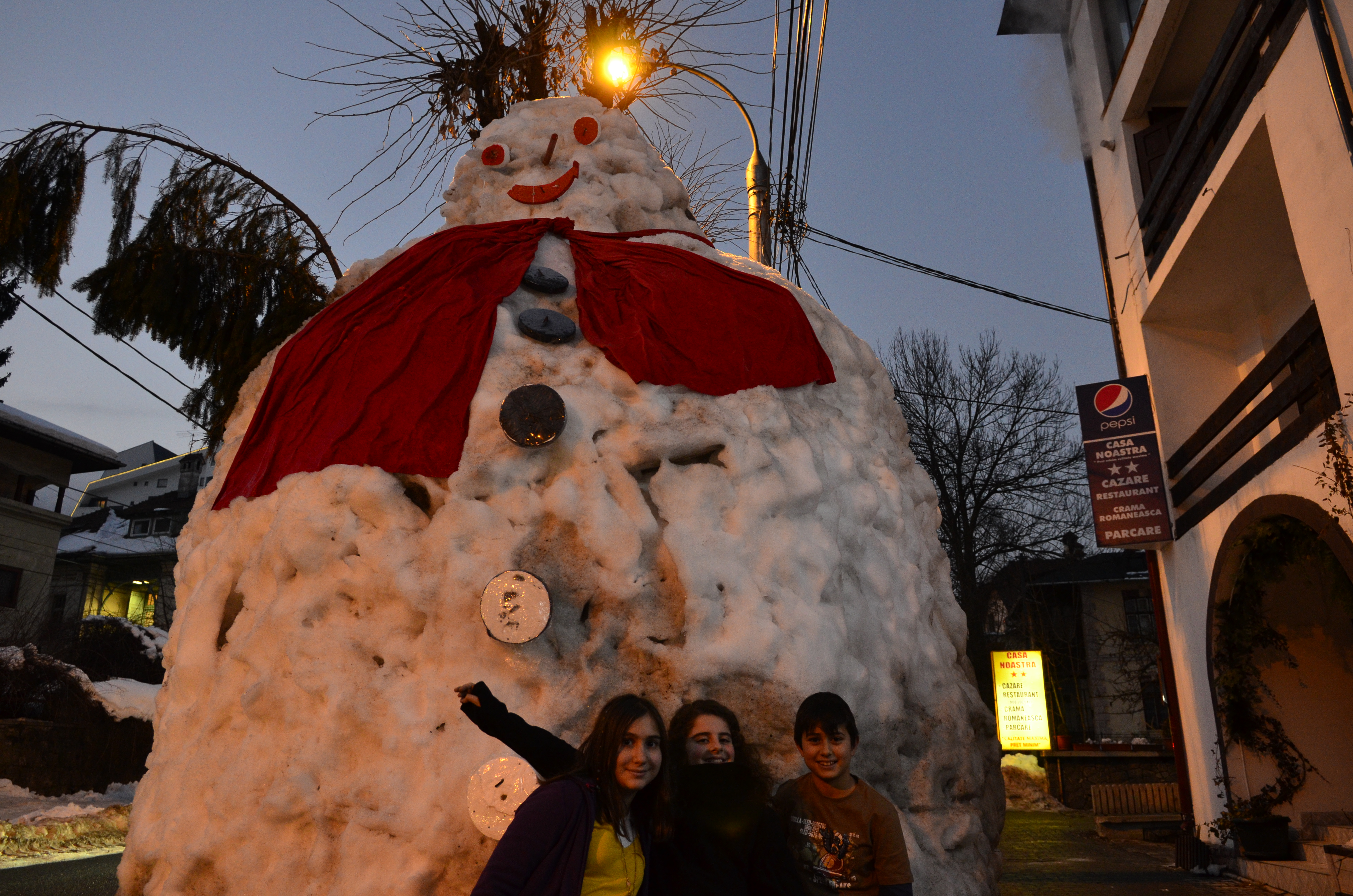Bükreş-Braşov arası (160 km) karayolu ile 4 saat sürdü. Yol boyunca trafik Braşov’un Romanya’lılar için de popüler bir destinasyon olması nedeniyle yoğundu. Yol boyunca tek mola verdiğimiz tek yer ise çocukların görünce yakınına gitmek için sabırsızlandıkları dev kardan adam oldu.
