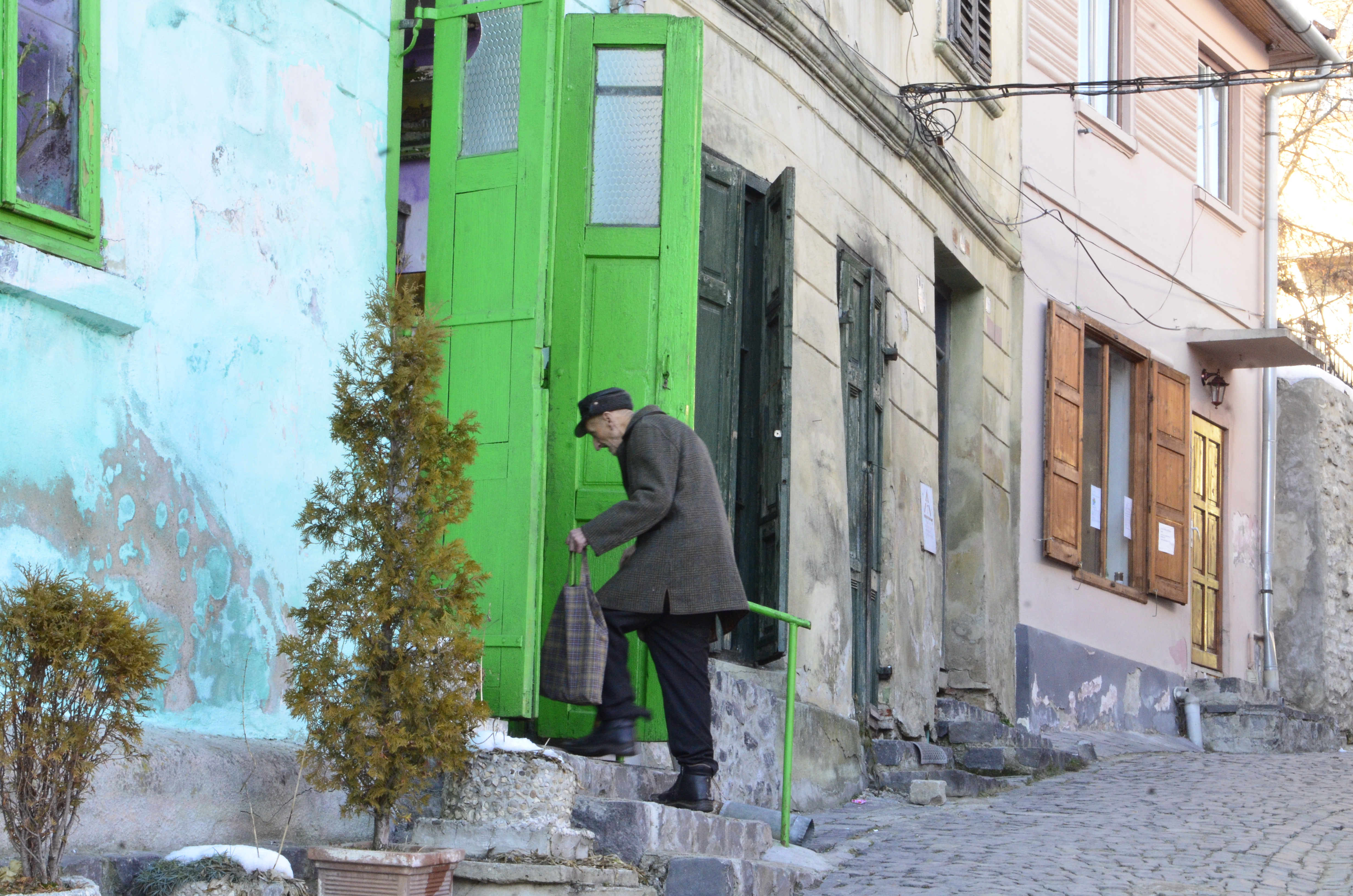 Hava çok soğuk. Yeni restore edilen evlerini aynı zamanda pansiyon olarak kullanan bir aile kahve için kapılarını bize açıyor.