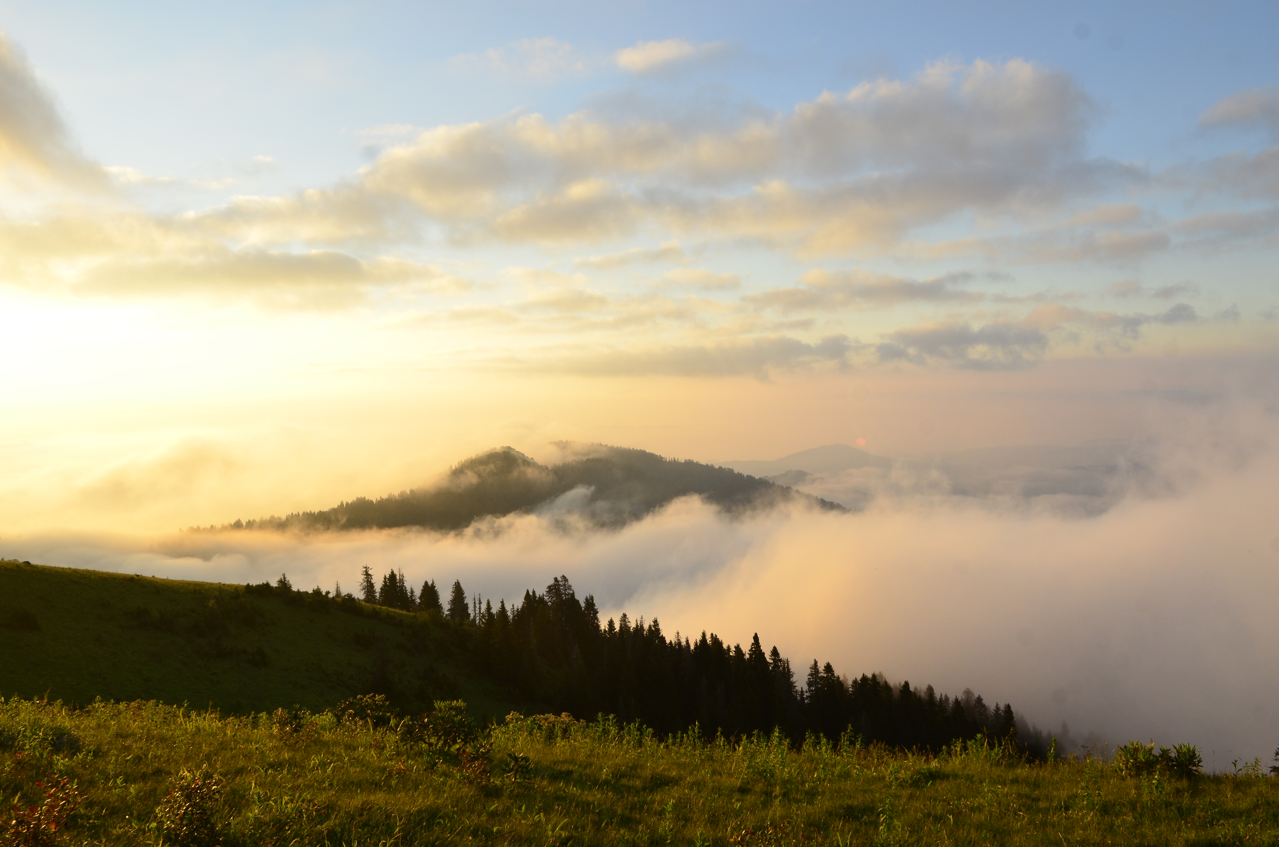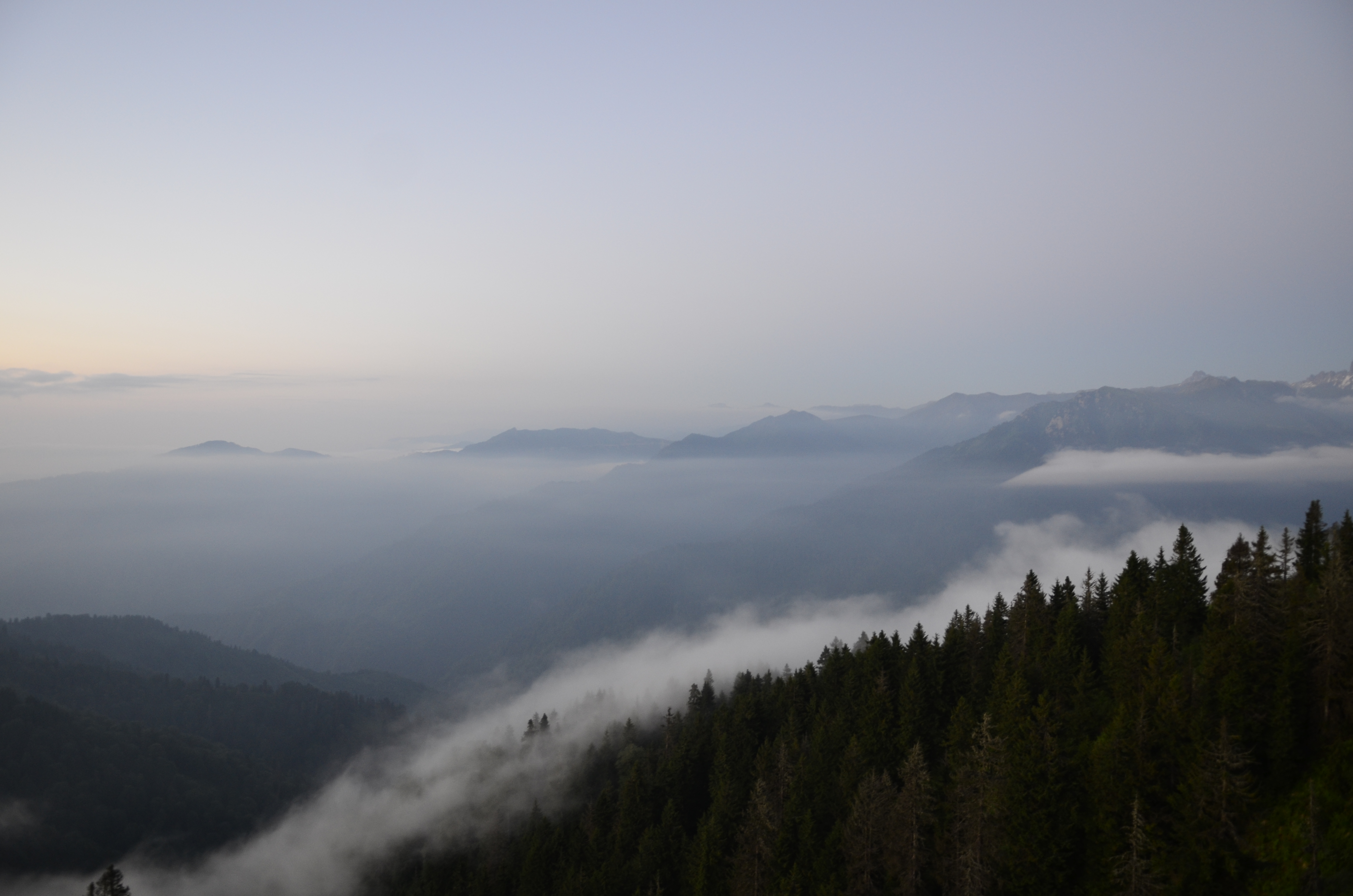Geceyi geçireceğimiz Pokut Yaylası’na doğru yola çıkıyoruz. Sal Yaylası’nda araçtan inip sislerin içerisinden yürüyerek Pokut’a doğru geçiyoruz.